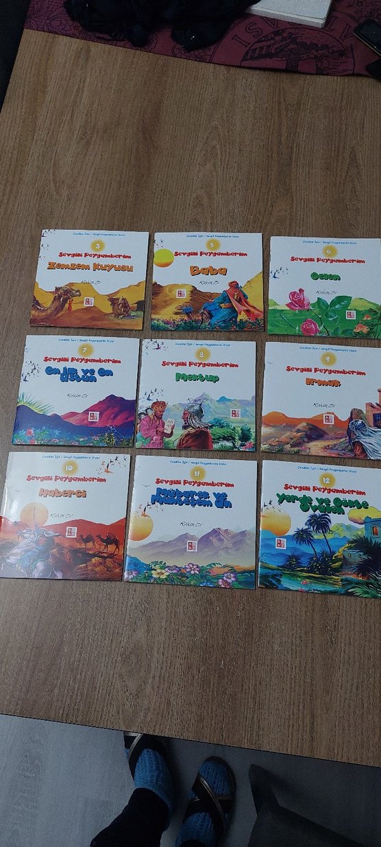 Hiç kullanılmamış 9 adet okuma kitabı....Çeşitli renkli kapaklara sahip 'Sevgili Peygamberim' çocuk kitapları seti, çocukları eğitmek ve eğlendirmek için hazırlanmıştır.