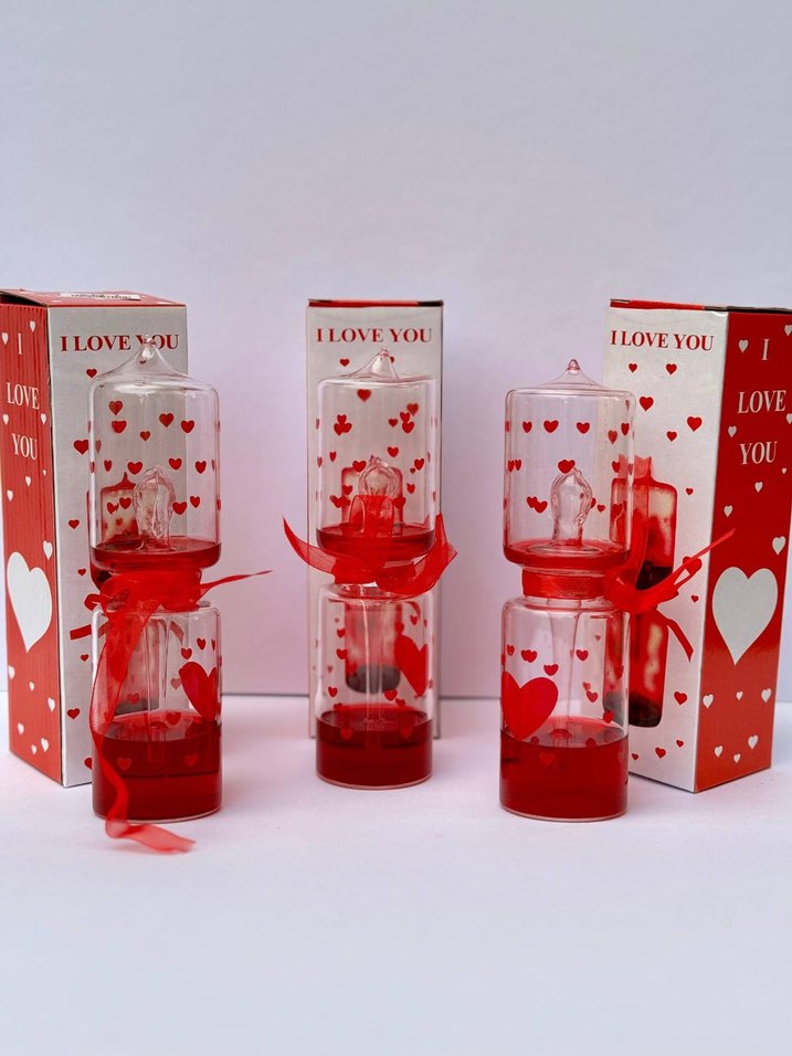 Kırmızı kalpler ve "I LOVE YOU" temalı romantik tasarımlı kadın parfümü, uyumlu kutusunda sunulmaktadır. ❤️