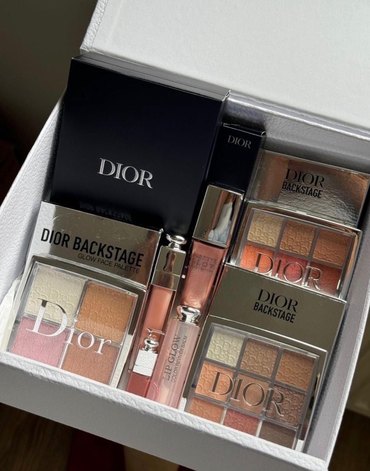 Dior Backstage göz farı paletleri, mat ve ışıltılı açık bej tonları içerir. Set, tamamlayıcı dudak parlatıcıları ve yüz ışıltı paletleriyle birlikte gelir. ✨