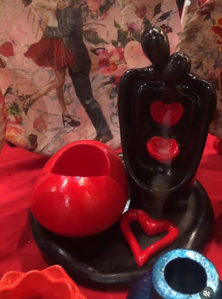 Romantik geri akış tütsülük. Tütsü koyma yeri arkadadır. Kalbin içerisinde kırmızı mumu var. 4 parça olarak gönderilir. Yanında 5 adet karışık geri akış tütsü ile beraber.