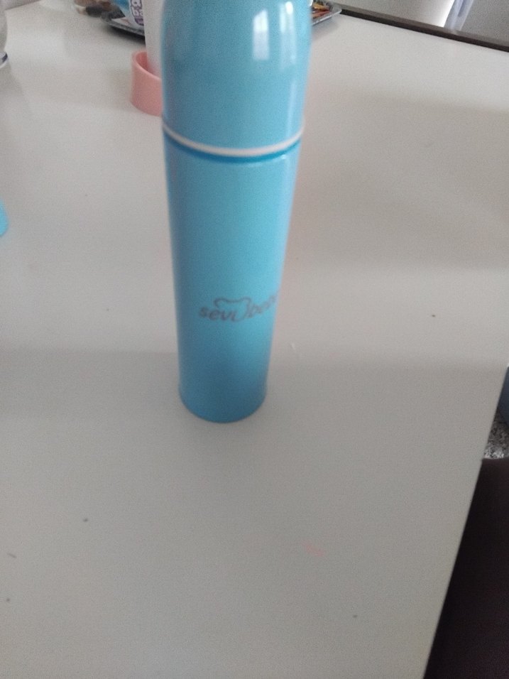 Pastel mavi renkte çocuk termosu, içecekleri sıcak tutar ve kolay taşınabilir. Kompakt tasarımıyla çocuklar için uygundur. sıfır