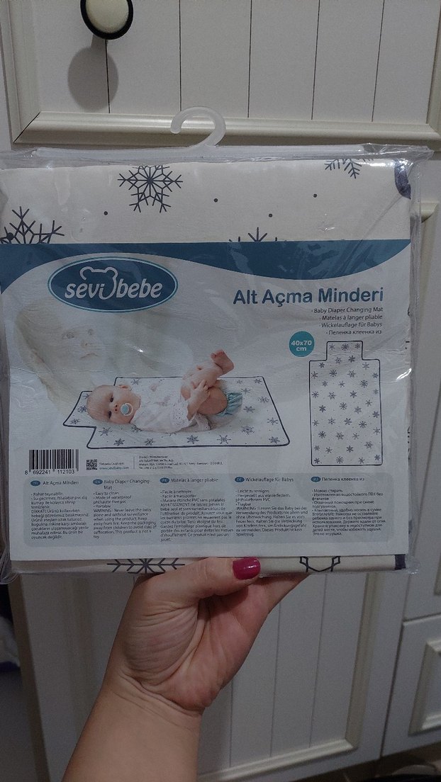 Hic kullanilmamis ambalajli alt acma minderi. Kullanisli. Silip silip tekrar kullanabilirsiniz. Makinaya da atabilirsiniz sorun olmaz. 2 tane vardi 1ini kullandim ihtiyac fazlasi oldugundan digerini satiyorum. istanbul ici elden teslim yapabilirim. Sevibebe beyaz baskılı desenli, yumuşak fleece malzemeden yapılmış alt açma minderidir. Ölçüsü 40x70 cm olup, bez değiştirme için uygundur.
