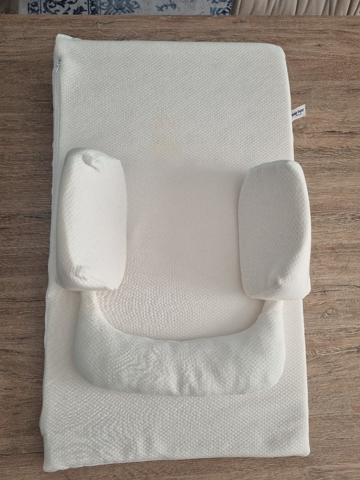 Bebek reflü yatağı, üzerinde hafif sarı bir leke var, ürün yıkandı.