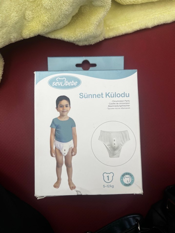 Sevibebe markalı, 5-12 kg arası çocuklar için mavi renkli, baskılı sünnet külodu. Konforlu ve sünnet sonrası kullanım için uygun.