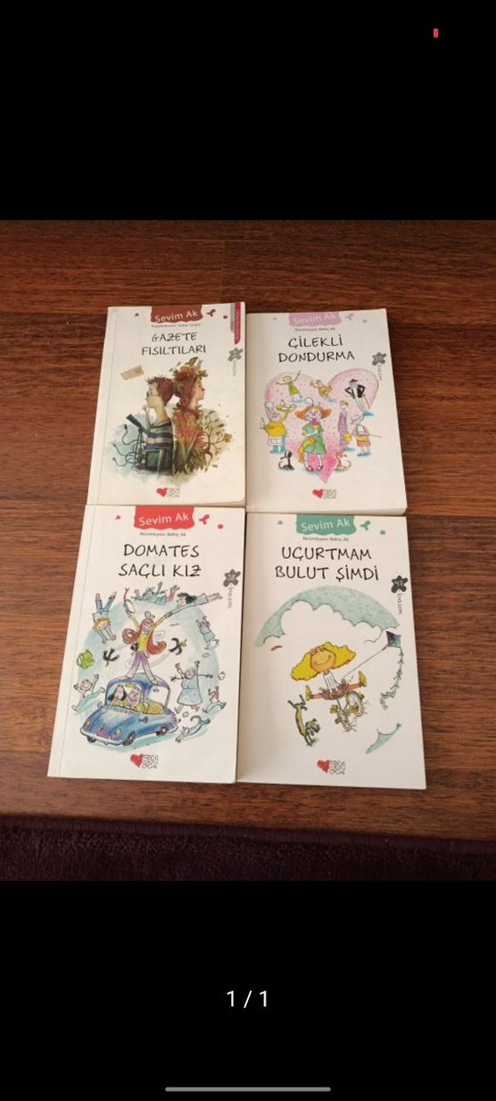 Sevim Ak tarafından yazılmış "Gazete Fısıltıları," "Çilekli Dondurma," "Domates Saçlı Kız" ve "Uçurtmam Bulut Şimdi" adlı dört çocuk kitabından oluşan set. Her kitap eğlenceli çizimler ve hikayeler içerir. TANE FİYATİDİR