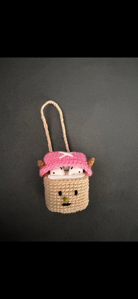 Pembe şapkalı, yüz detaylı renkli örgü sevimli air pods kılıfı.görseldeki ürün serie 1 ve 2 ye uygun.istenilen model ve renklerde yapılmaktadır.