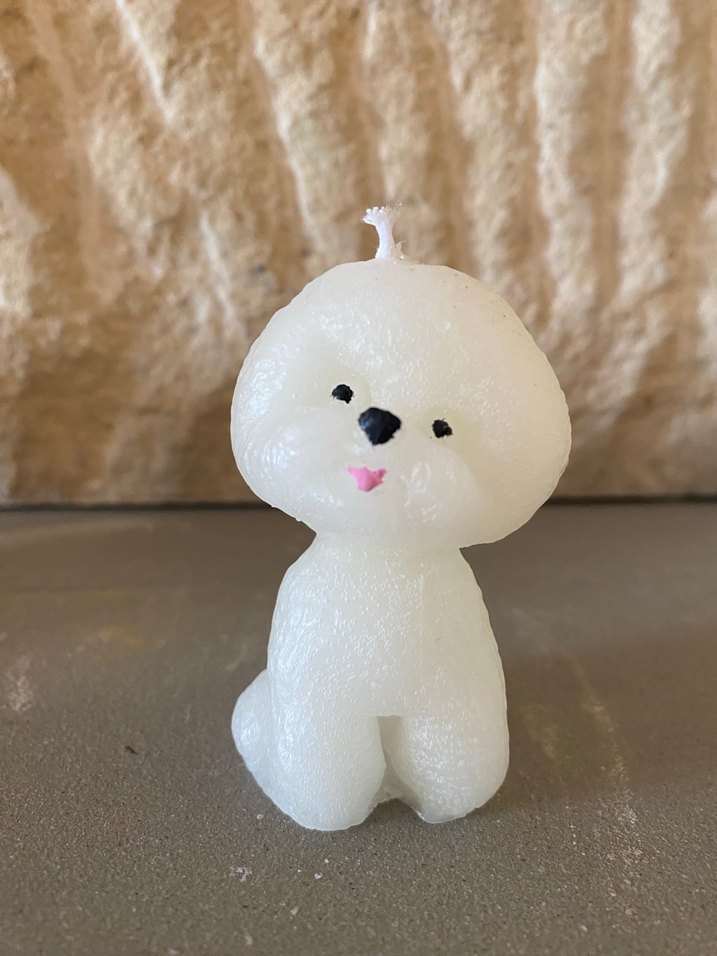Pastel detaylı, sevimli köpek şeklinde beyaz mum, dekoratif kullanım için uygundur. ️