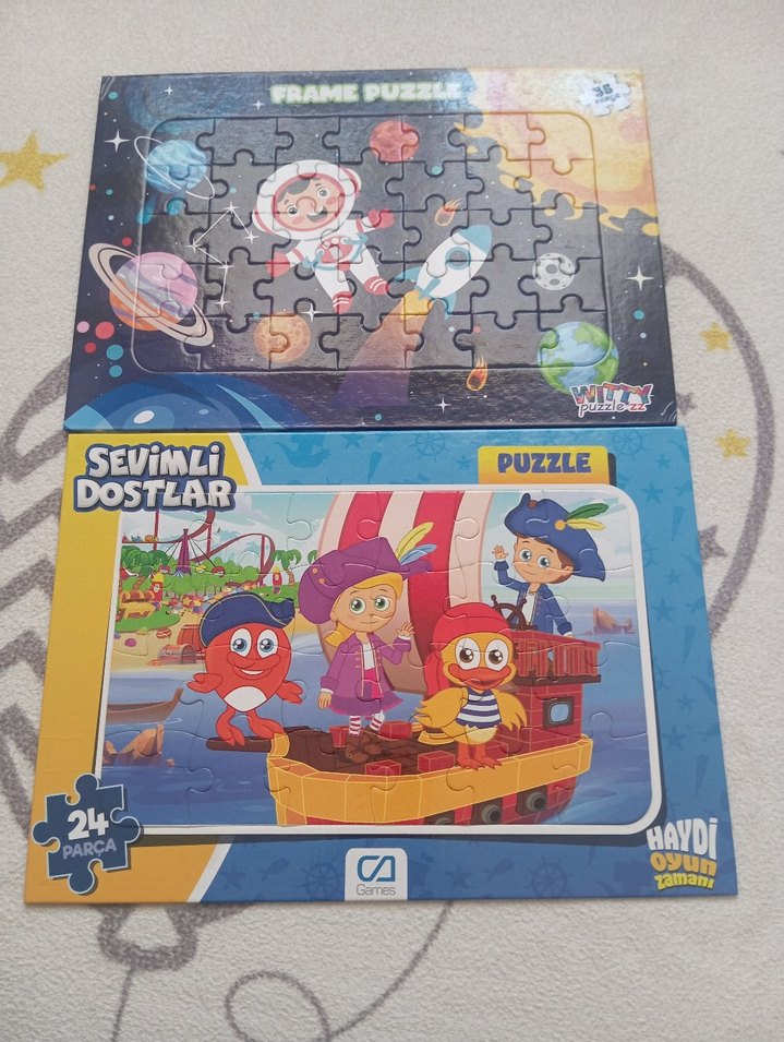24 parçadan oluşan renkli çocuk puzzle, sevimli karakterlerle dolu ve eğlenceli dostluk teması içerir. Uzay ve canlı renkler dikkat çekiyor.