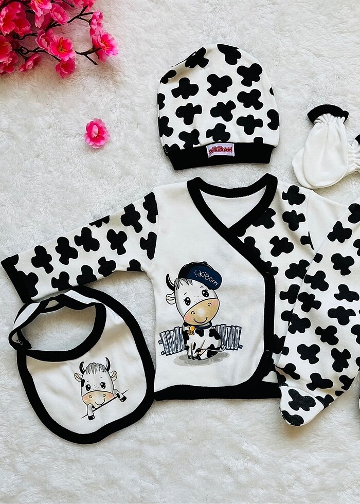 Sevimli inek desenli yenidoğan hastane çıkışı bebek takımı