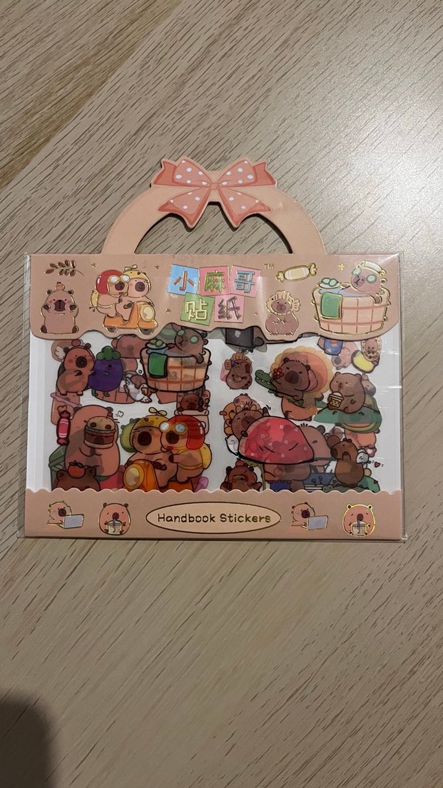 Üstünde fiyonk detayı olan, çeşitli aktivitelerde sevimli karakterler içeren sticker kitabı. Notlar ve el işleri için uygun.