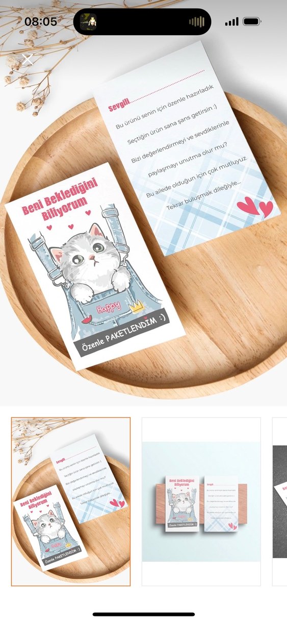 Sevimli kedi illüstrasyonu ve bekleyiş, kavuşma temalı içten bir mesaj içeren teşekkür kartları 100 adet.