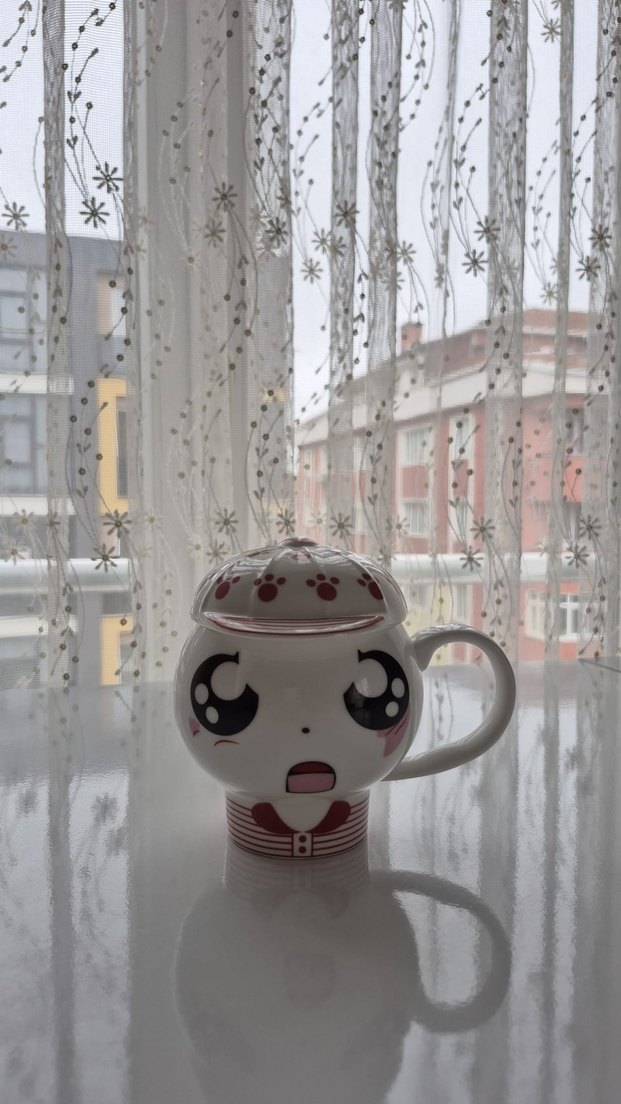 Sevimli Yüz Desenli Kapaklı Beyaz Kupa