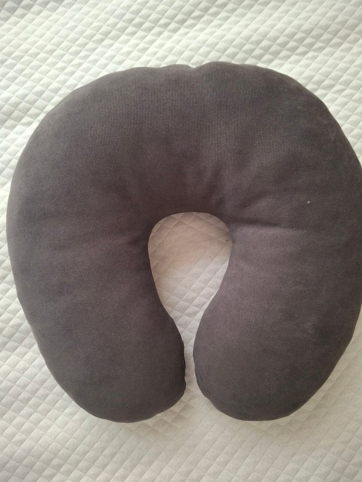 Yumuşak dokulu, desen içermeyen gri boyun destek yastığı, konfor ve destek sağlar.