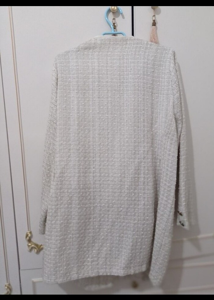 M-L bedene uyumlu Tüvit hırka butik ürünü. Son fotoğrafta belli bile olmayan minicik bir lekesi var yıkanınca geçebilir.