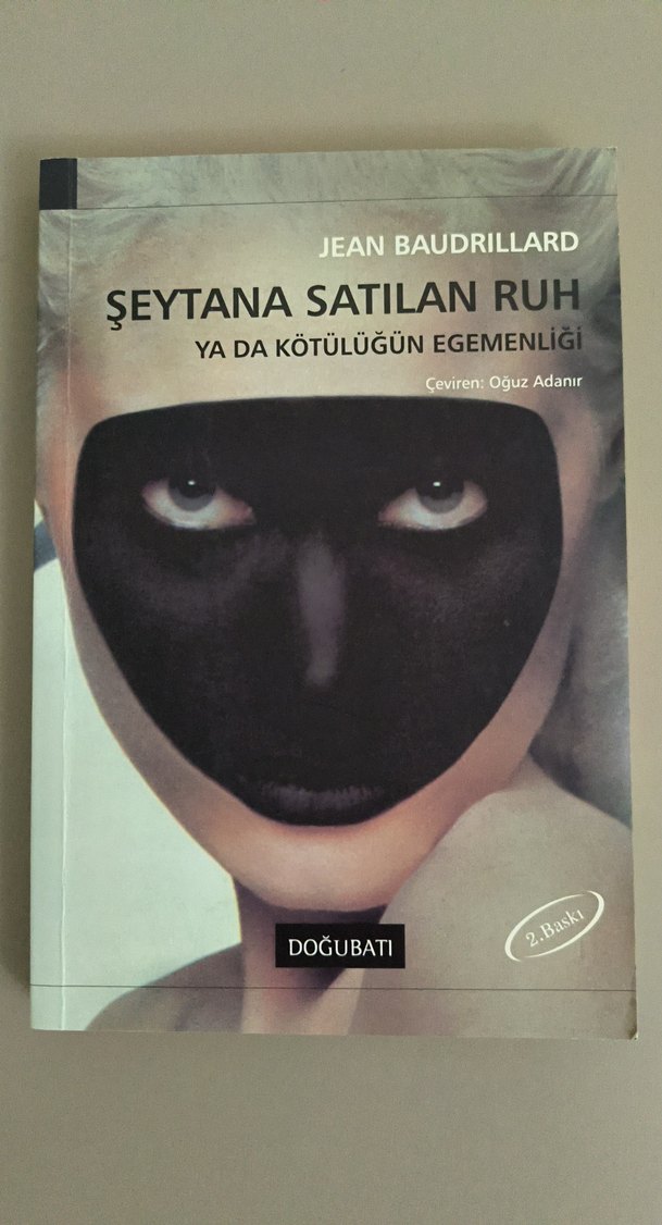 Jean Baudrillard - "Şeytana Satılan Ruh". Son fotoğrafta gösterdiğim gibi bir kaç sayfada altı çizili cümleler var. Haricinde Defosuz, Sıfırdan Farksız Bir Kitap.