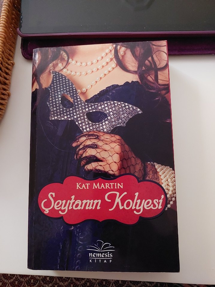 Nemesis Kitap'tan Kat Martin'in "Şeytanın Kolyesi" adlı romanı, maskeli ve inci kolyeli bir kadının gizemli kapak görseliyle dikkat çekiyor.