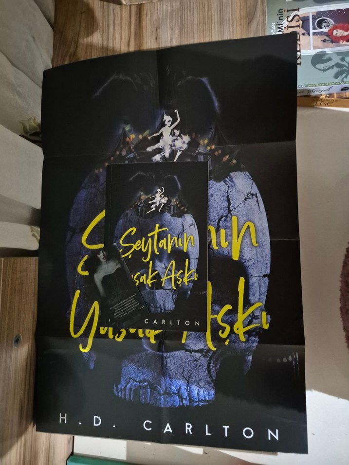 H. D. Carlton'ın "Şeytanın Saklı Aşkı" adlı romanı, kafatası ve sarı yazılarla gizemli bir kapak tasarımına sahiptir. posterli ayraçlı sıfır