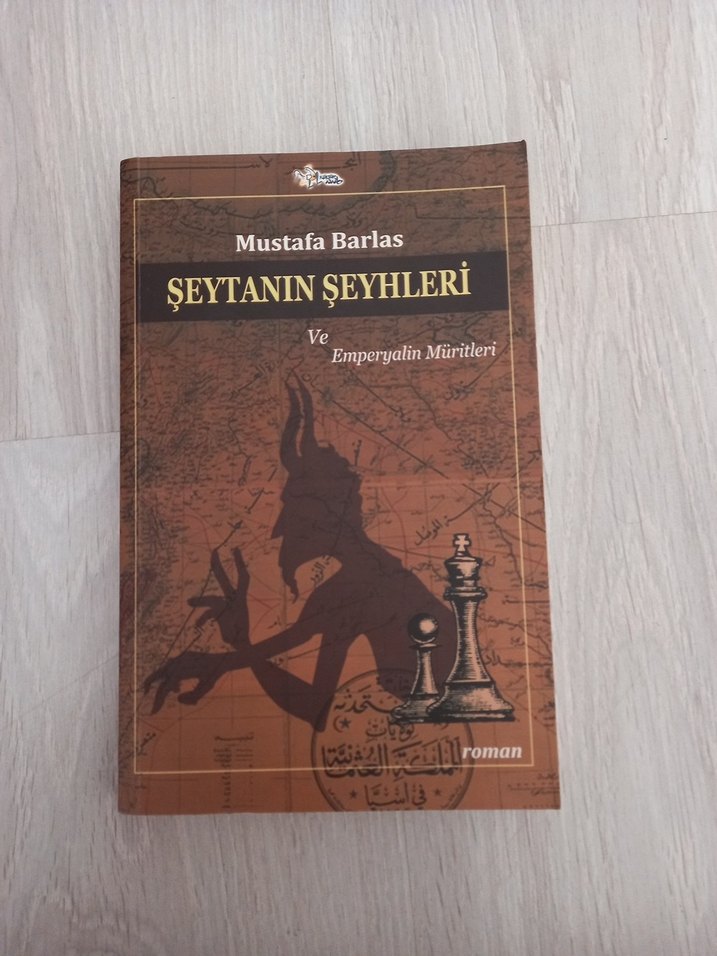 Mustafa Barlas'ın Şeytanın Şeyhleri ve Emperyalin Mürütleri temalarını işleyen mitoloji kitabı. Kapakta satranç taşları ve gölge figürler var.