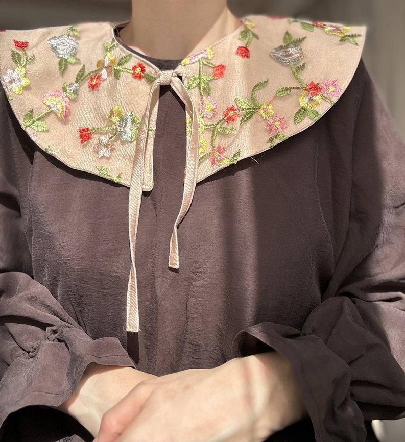 Ipek ve Nakışlı kumaştan seyyar yaka. Gömlek, Elbise üzerine ideal.Standart beden