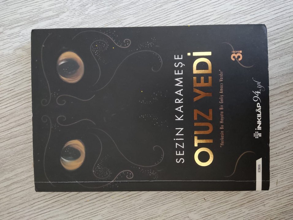 Sezin Karameşe'nin "Otuz Yedi" romanı, şiirsel bir dille çeşitli hayat hikayelerini anlatıyor. Siyah kapakta sanatsal desenler ve altın renkli yazılar var.