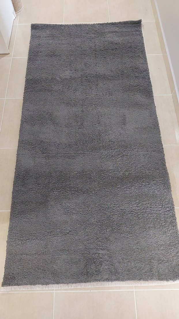 Shaggy hic kullanilmadi. Antrasit gri renkte, düz ve yumuşak dokulu modern tarzda bir halı.