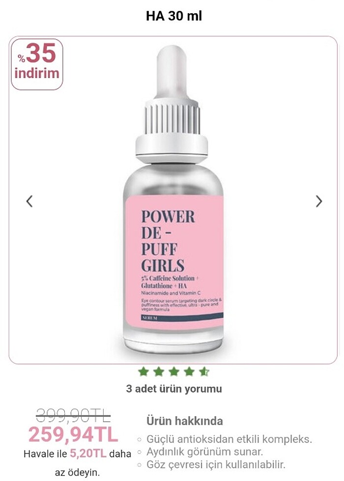 She Vec Power de Puff Girls serumudur. Göz çevresine şişkinlikler ve koyu renk görünümü için kullanılır. Hyaluronik asit, kafein ve glutatyon içerir. Kozmeladan paket olarak almıştım, bende benzer ürün olduğu icin ayırdım. Hiç kullanılmadı. Kapağını bile açmadım. Orijinal üründür Fiyatını de görsellerde görebilirsiniz. Dolabımda topluca almak isterseniz de birleştirip tek kargo yapabilirim.