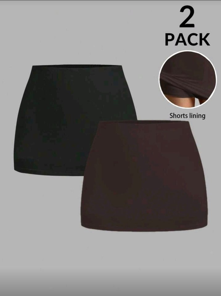 Siyah renkli, esnek bel bantlı ve şort astarlı iki adet dar kesim mini etekten oluşur.