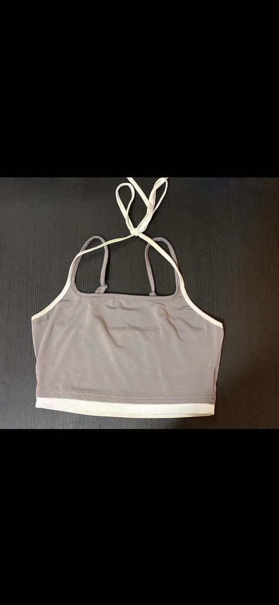 Gri, straplez ve ince askılı, sıkı kesim crop top. Düz sentetik kumaştan, spor ve günlük kullanıma uygun. etiketi rahatsiz ettigi icin mevcut degildir.