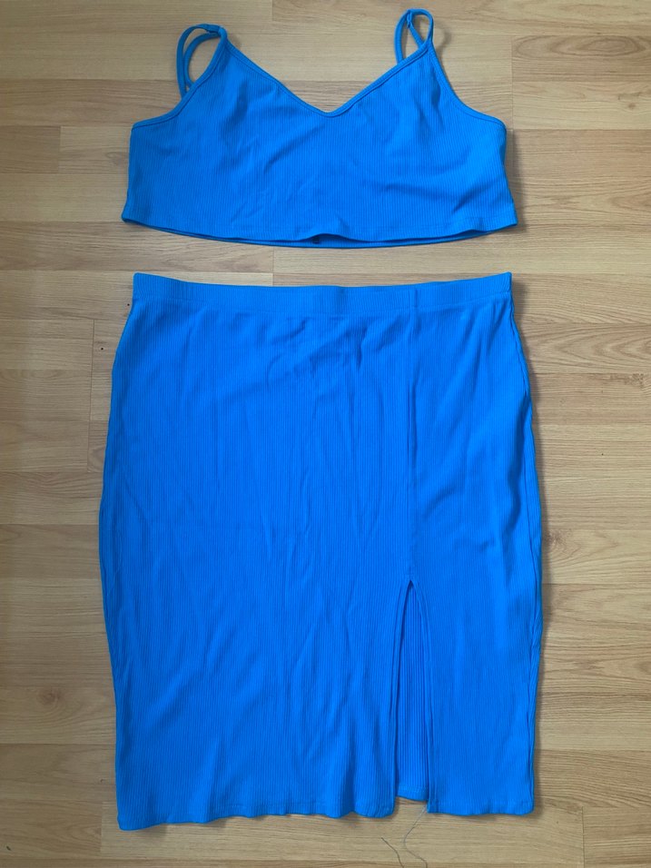 Koyu mavide, midi boy ve ön kısmında hafif yırtmaçlı, düz kesim etek takım Günlük kullanım için rahat sentetik kumaştan üretilmiştir. 4XL BEDEN