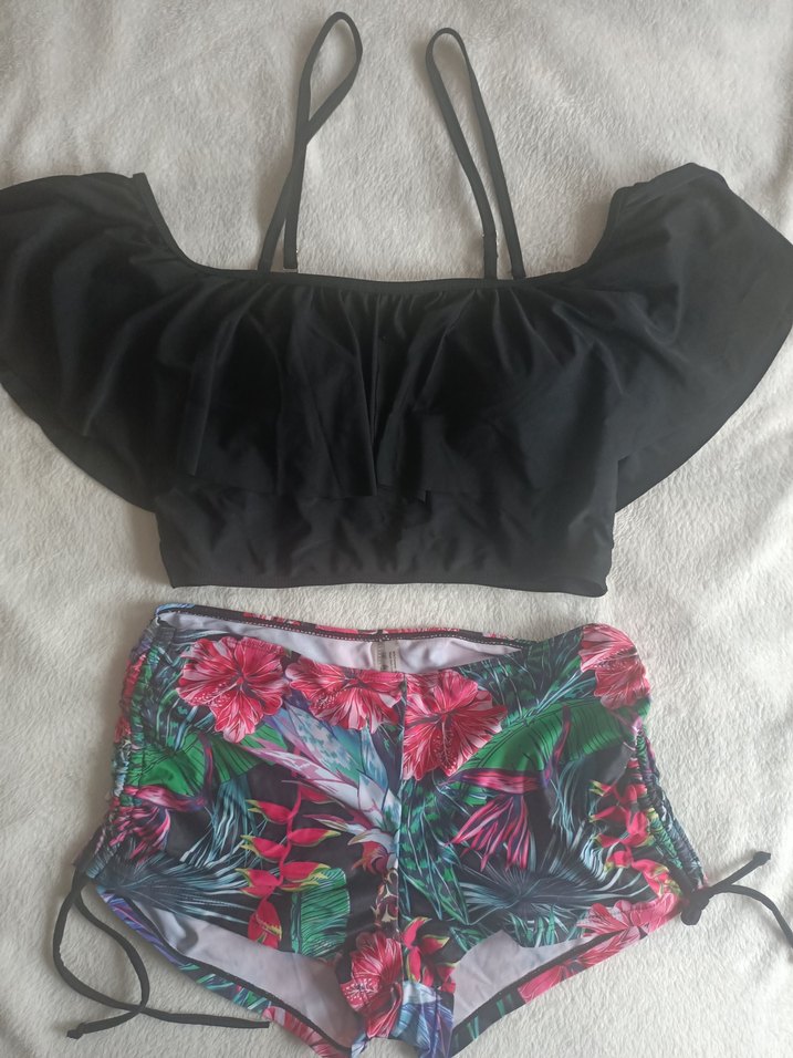 Kadınlar için bohem stilinde, ince askılı volanlı üst ve canlı çiçek desenli mini şortlardan oluşan rahat bikini takımı, plaj için uygundur. kusursuz