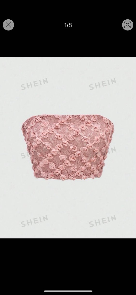 Shein Pembe Dantel İşlemeli Straplez Büstiyer