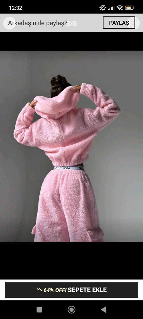 Shein Pembe Peluş Kadın Eşofman Takımı