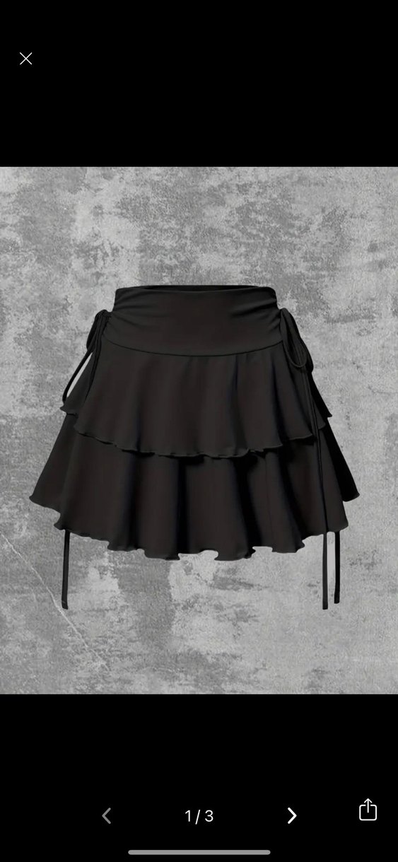 Shein Siyah Kat Kat Fırfırlı Mini Etek