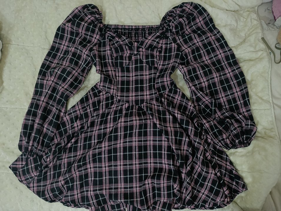 Shein Siyah-Pembe Kareli Gotik Elbise