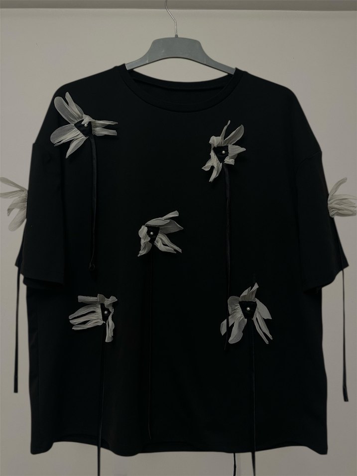 3d çiçekleri olan. zarif tshirt