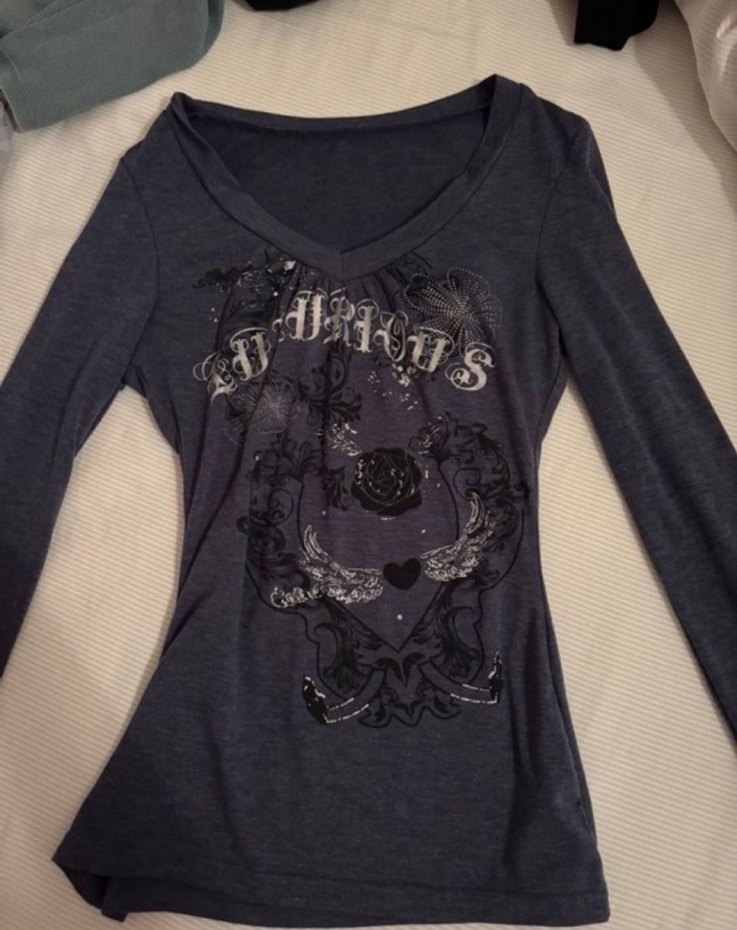 gotik bluz bi kere giydim vintage etşketi yok defosu yok rengi mavi mor gibi bi tık