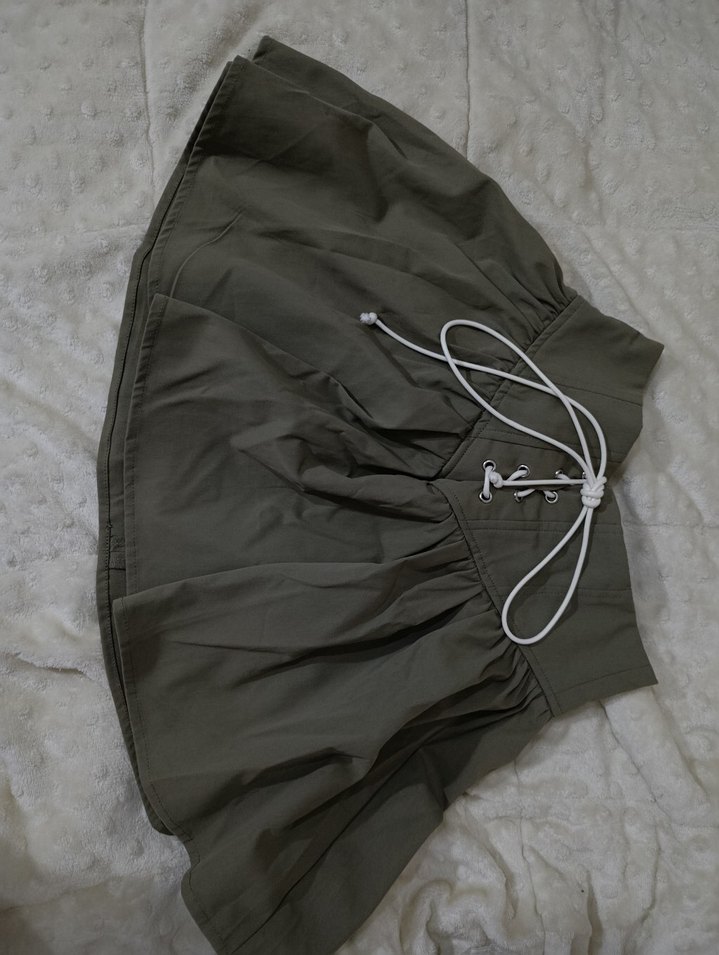 Shein Yağ Yeşili Bel Detaylı Midi Etek