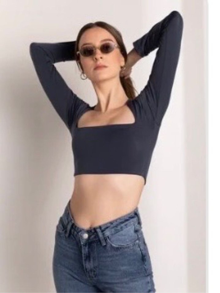 Şık kesimli crop bluz. Uzun kollu, vücuda oturan yapısı sayesinde hem günlük kombinlerde hem de gece şıklığında rahatlıkla kullanılabilir. Kumaşı esnek ve rahattır. Herhangi bir yırtık, leke veya deformasyon yoktur. Az kullanılmış, temiz durumdadır.