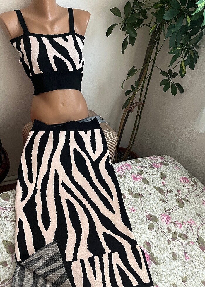 Pudra Jakarlı Crop Atlet-Etek Triko Takım
