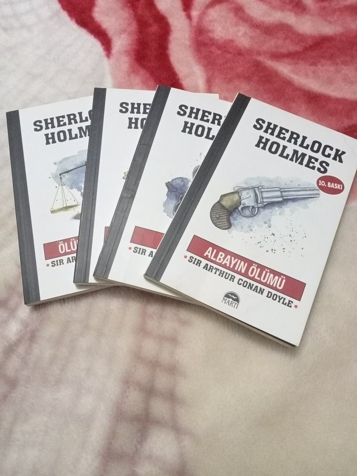 Sir Arthur Conan Doyle'un Sherlock Holmes serisinden 'Albayın Ölümü' ve diğer dedektif hikayelerini içeren kitap seti. ️♂️