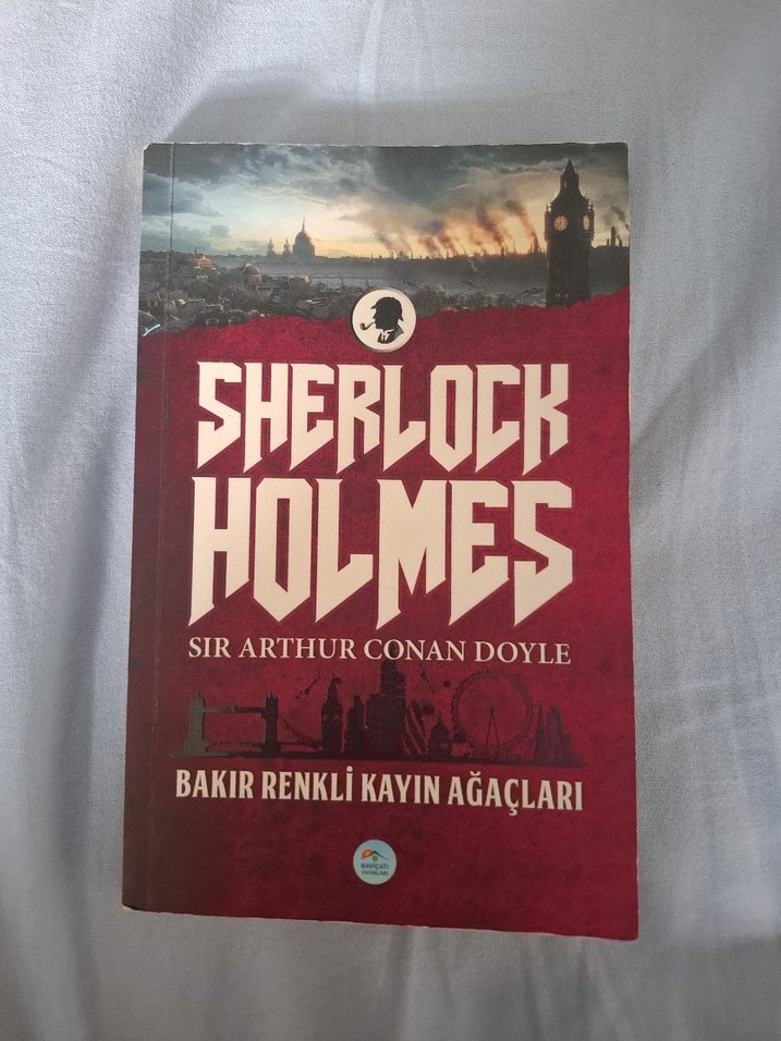Sir Arthur Conan Doyle'un Sherlock Holmes kitabı, 'Bakır Renkli Kayın Ağaçları' adlı hikayeyi içerir. Kitabı satıyorum.