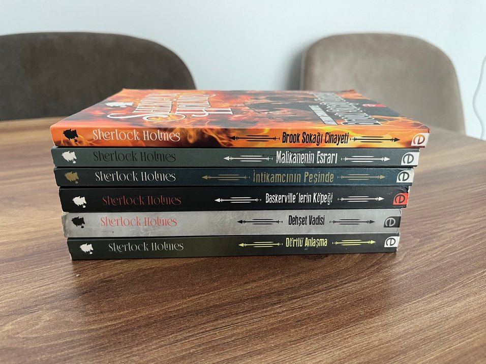 Sherlock Holmes'un Brook Sokağı Cinayeti, Malikanenin Esrarı ve diğer dedektif hikayelerini içeren kitap seti.