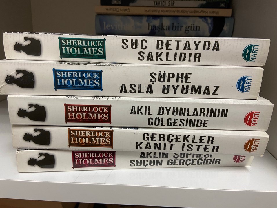 Sherlock Holmes serisi 5 kitap, suç detayları, şüphe, akıl oyunları ve kanıt arayışını konu alır. Dedektiflik sevenler için ideal. ️♂️