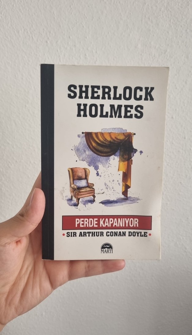 Sir Arthur Conan Doyle'un Sherlock Holmes karakterini içeren "Perde Kapanıyor" adlı polisiye kitabı, gizem ve suç çözme hikayeleri sunar.