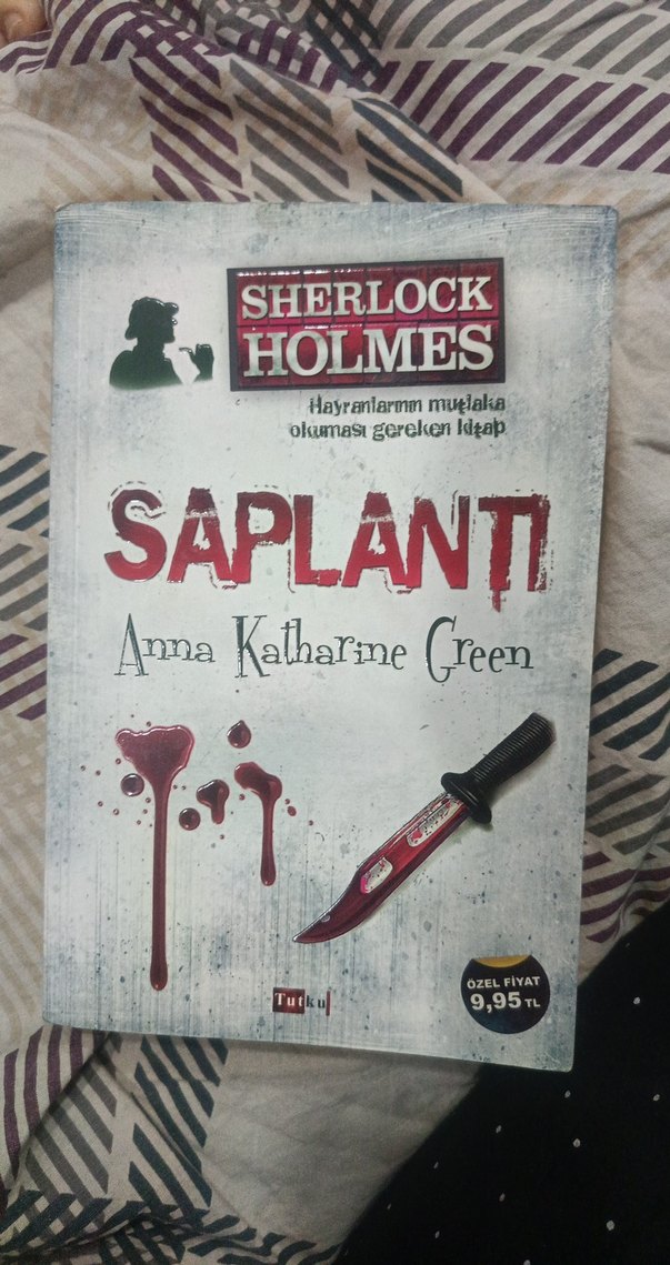 Sherlock Holmes adlı dedektif kitabı 'Saplantı', Anna Katharine Green tarafından yazılmıştır. Gizem severler için mutlaka okunması gereken bir kitap. Kapakta kanlı bir bıçak görünüyor.