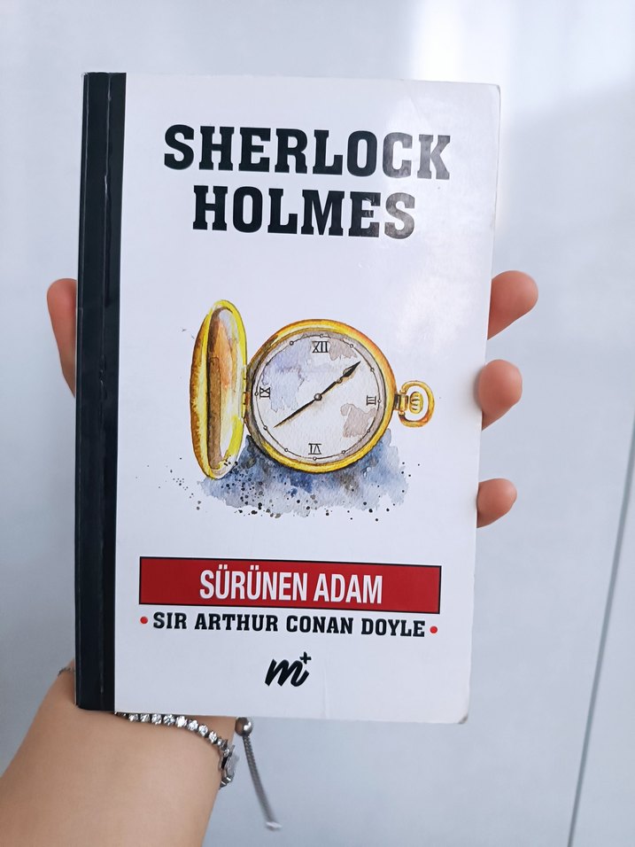 Sir Arthur Conan Doyle'un Sherlock Holmes kitabı 'Sürünen Adam', kapağında klasik cep saati illüstrasyonu bulunuyor. ️