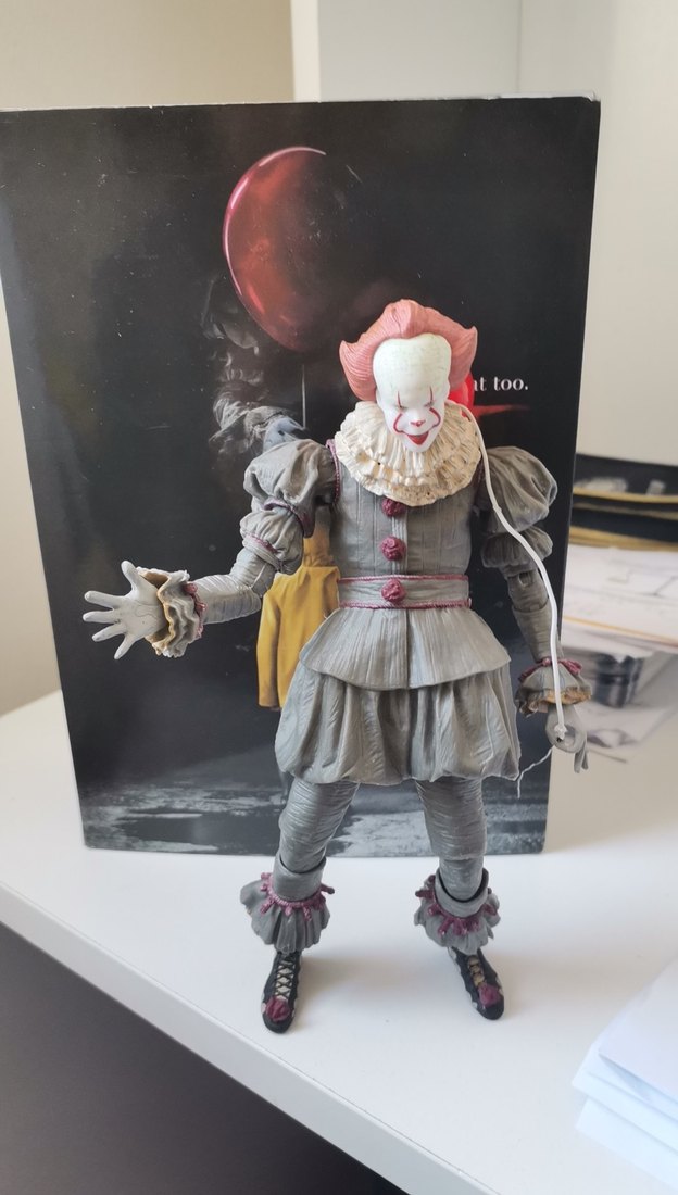 Pennywise Dans Eden Palyaço figürü.. Eklem sorunu bulunmamakta ve kutu içeriğinde; 1 Adet SS Georgie Gemi, 1 Adet Normal Yüz, 1 Adet Ağzı Açık Yüz, 1 Adet Sırıtan Yüz bulunur.