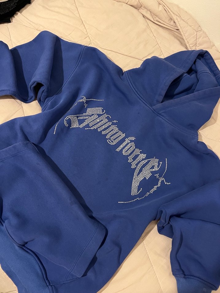 Lacivert, saks mavisi oversize taşlı sweatshirt