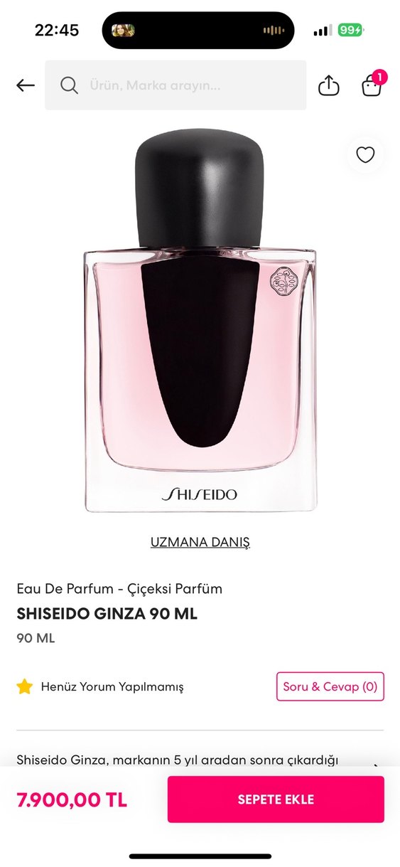 Shiseido Ginza 90 ML, cam şişede sunulan çiçeksi bir Eau De Parfum kadın parfümüdür. Sadece bir kez denemek için kullandım orijinaldir güncel fiyatı yazıyor