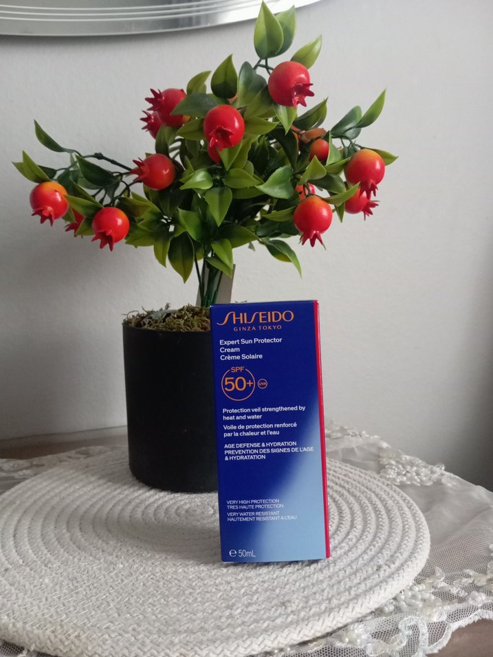 sıfır ve orjınal Shiseido Expert Sun Protector Cream, SPF 50+ koruma sağlar. Koyu kırmızı kutuda, cildi güneş ve suya karşı güçlendirir. ☀️